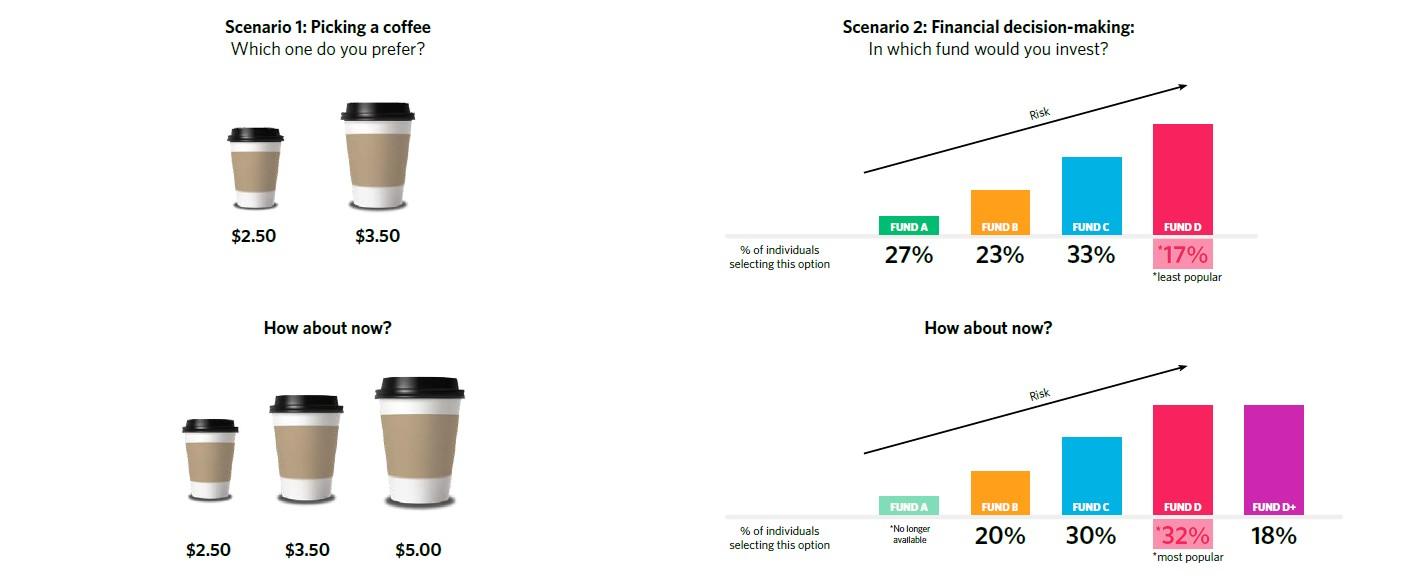 When a more expensive third option is added, people start choosing the middle coffee. Not because it changed, but because it feels better by comparison.